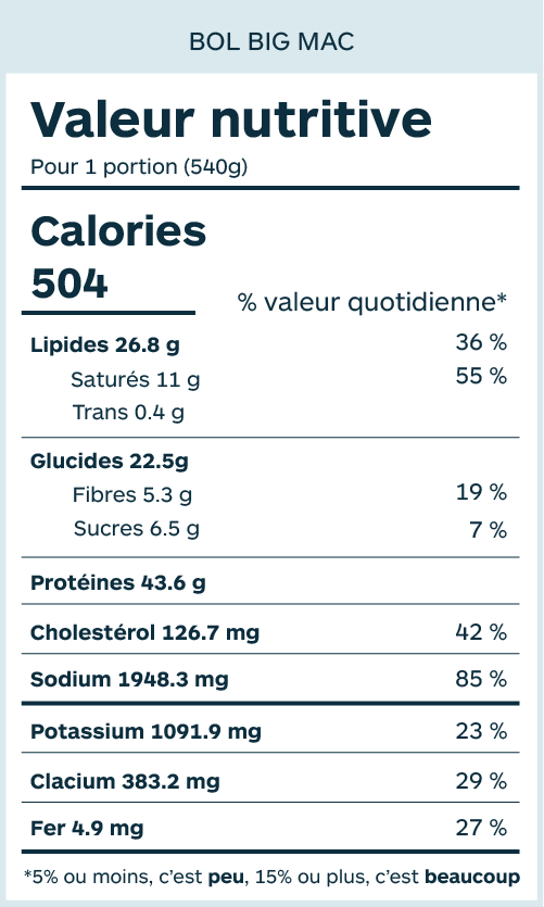 Jusqu’à ce jour. Un jour béni. Un jour glorieux. Un jour baigné d’une lumière divine. Un jour d’où la voix des anges fait vibrer l’âme des pêcheurs en un chant salvateur. L’équilibre rétabli de l’univers apaise nos âmes en ce jour où, tels le Ying et la Yang, cheeseburger all dressed et salade du jardin se rencontrent, s’unissent, ne deviennent qu’un. De leur union nous est donnée l’ambroisie terrestre : le Big Mac Bol.