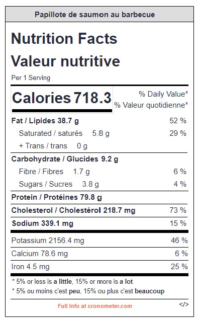 Si le barbecue est généralement synonyme de grosse viande rouge, il ne faut pas sous-estimer sa versatilité. Pour varier un brin des burgers et autres variations du bœuf, voici une recette simplissime de saumon en papillote. Préparée en un tour de main, elle permet aussi d’apprécier pleinement le goût du saumon avec ses assaisonnements léger… ou de laisser aller votre créativité et ajouter herbes, sauces et épices de tout acabit. Vous pouvez même substituer le saumon pour un autre poisson, selon vos goûts, ce que votre beau-frère a pêché ou les spéciaux de la semaine. Il s’agira simplement d’ajuster le temps de cuisson. Vous pouvez aussi utiliser cette technique au four lorsque la belle saison sera partie. Point bonus : le saumon est une excellente source de protéine et d’oméga-3, un acide gras dont la réputation n’est plus à faire. Il améliore la santé du cœur, de votre cerveau et de votre santé mentale. Il est d’ailleurs recommandé de manger 2 portions de poisson par semaine, en préférant les poissons gras (saumon, truite, hareng, morue, sardine, maquereau, flétan), mais vous obtiendrez aussi des oméga-3 en mangeant d’autres fruits de mer comme la crevette, des moules, du homard et du crabe.